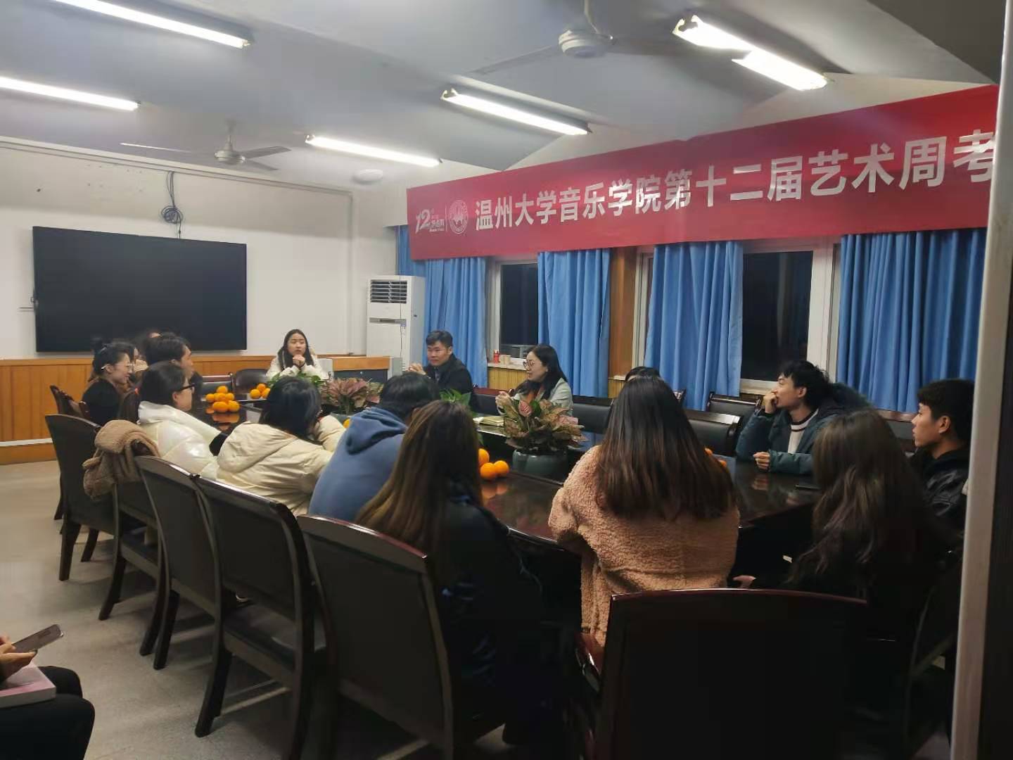 于音乐楼203室开展慰问考研学子活动,院党委副书记蔡晓武,辅导员曹清清、刘炳林及2021届部分考研学子参加。