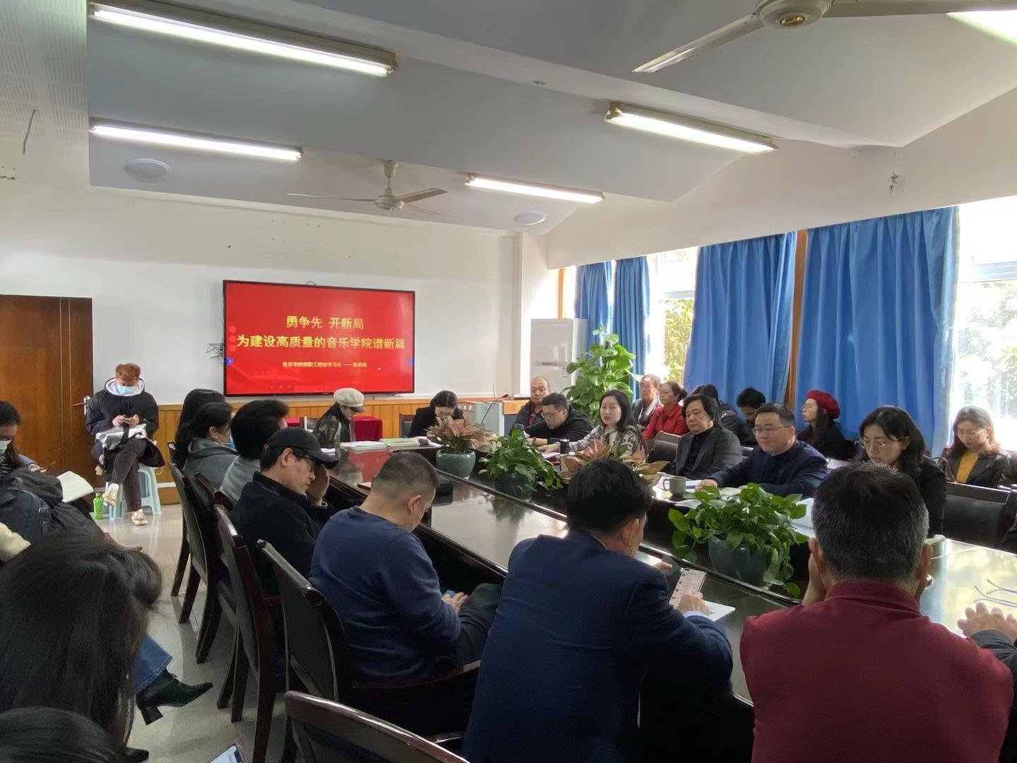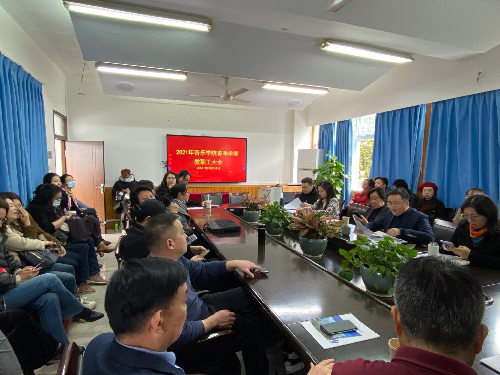 春季新学期全体教职工大会在音乐楼203会议室召开。学院领导班子以及全院教职工出席会议,会议由学院党委书记朱启鑫主持。