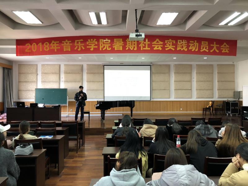 音乐楼报告厅201举行了暑期社会实践动员大会,本次暑期社会实践动员大会由2017级全体学生参加。
