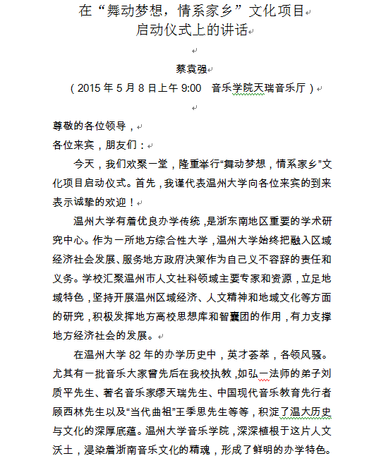 网络赌博网站 校长蔡袁强在“舞动梦想,情系家乡”文化项目启动仪式上的讲话