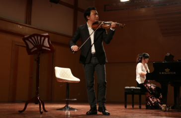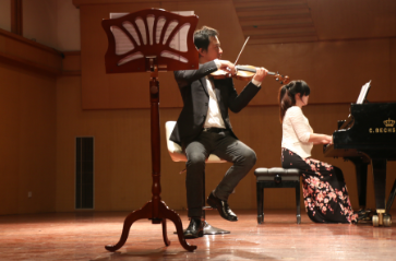 优秀的男中音于琨为全场听众带来了选自《费加罗的婚礼》中的《你想要跳舞吗,我的小伯爵》,其灵动活泼的旋律,获得了全场听众的赞赏。接下来胡锦超老师为全场观众带来了由著名音乐家久石让编曲的《千与千寻》和《魔女宅急便》的插曲,音乐在这两部影片中显得尤为重要,久石让的简约主义风格使宫崎骏的动画电影里充满想象力和梦幻意境,起到了画龙点睛的作用,胡老师及其夫人的合奏顿时把大家带入了影片之中,琪琪的善良可爱,千寻的勇敢坚强打动了许多听众。最使大家振奋的是胡老师的夫人刘雅声女士也为在场听众带来了一段钢琴独奏——热播剧《来自星星的你》中的一曲《start love》,在屏幕中大家看到了都教授和千颂伊的爱和分离,感人至深,由于大家对本部影视都比较了解,场面显得更加活跃。 最后胡老师与其夫人一起为大家献上了《Indigo Waltz靛蓝色的华尔兹》,这是首曲子将哀愁和激情深埋于内心,似为悄然别去的恋人而作的平静的华尔兹舞曲。轻柔的钢琴开始,接着小提琴的悠扬缓缓流出,如诗一般的钢琴在悠扬的小提琴声中楚楚动人。在柔和的钢琴与小提琴合奏中,本次音乐讲演会也到此结束了,胡锦超老师及其夫人为大家带来的两场音乐盛宴一定也会成为这春天的纪念。美妙的岁月总是短暂,美妙的日子还在延续。“走进天瑞音乐厅”音乐公开课堂下周同一时间我们不见不散,让我们共同在音乐中收获实现梦想的力量!