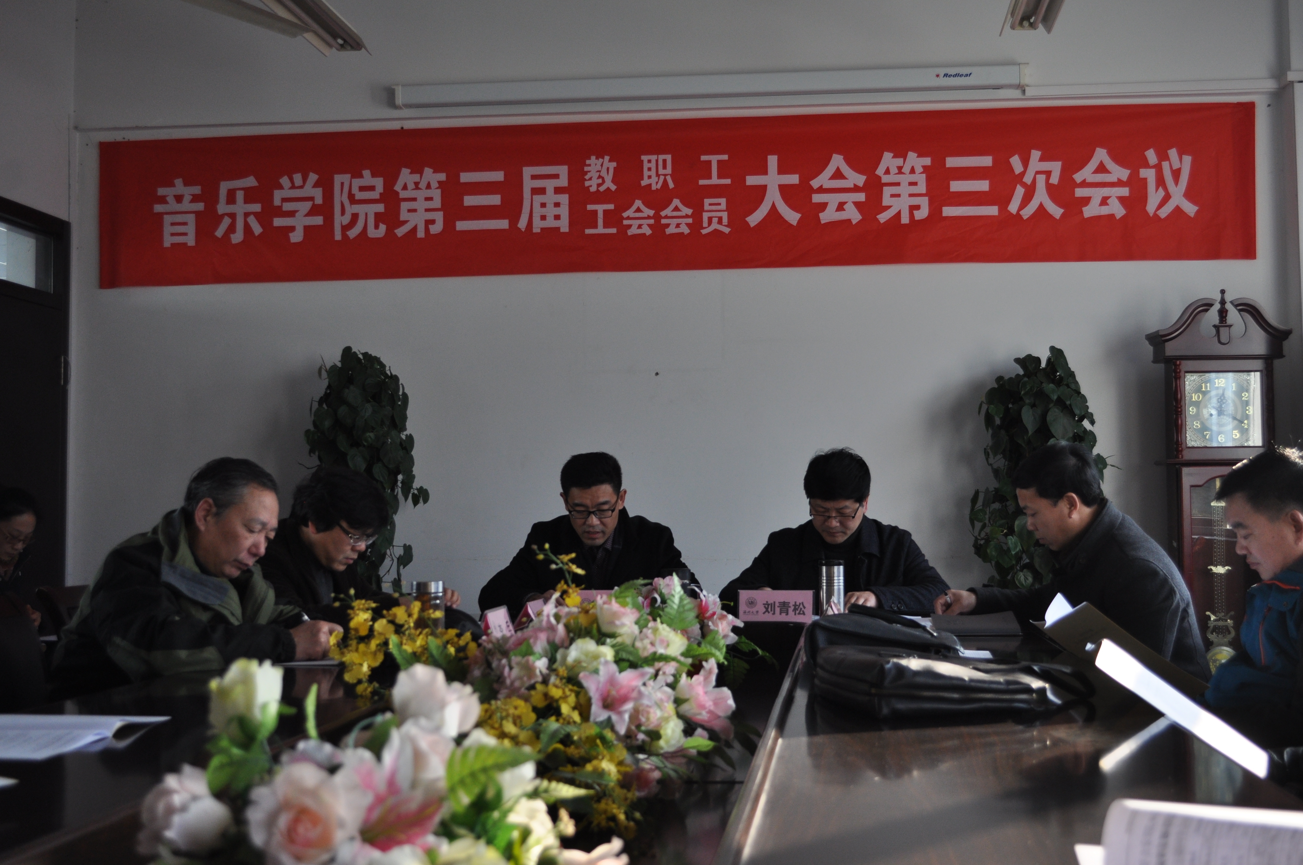 过去一年师资建设、学科建设、专业建设、人才培养、艺术展演等方面进行了全面的总结回顾,并提出,2015年,学院将继续坚持“学科强院、特色立院、人才兴院”的宗旨,重点抓好几项工作。即优化师资队伍结构、加强学科建设、拓宽办学思路、深化教育教学改革、提升艺术展演水平、促进学院文化建设等六个方面。会议还听取了刘玉亭同志所做的工会工作报告。