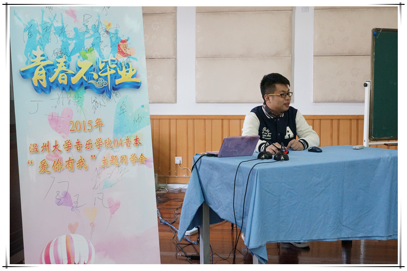 04音本班校友回母校举办“爱你有我”主题同学会。此次同学会有学院党总支书记刘青松、副院长王文韬、04音本班班主任富春雷老师以及20余位在校生代表一同参加。