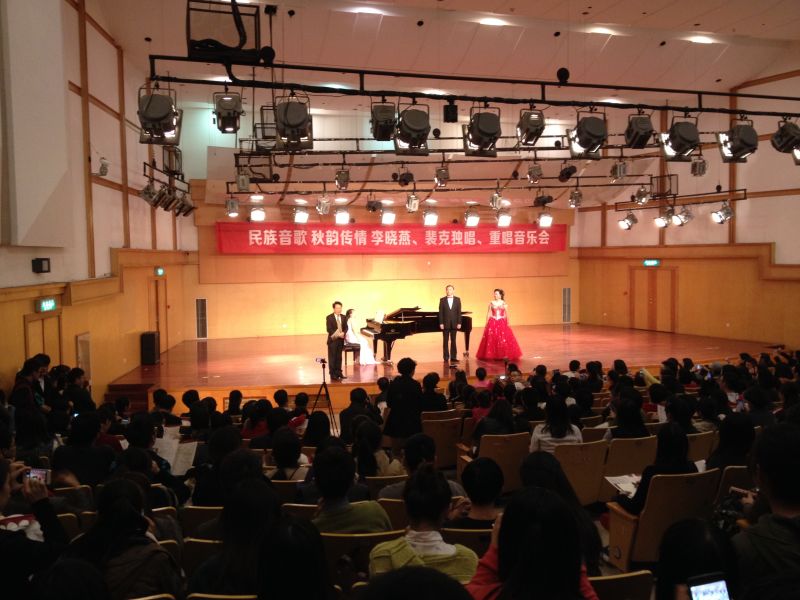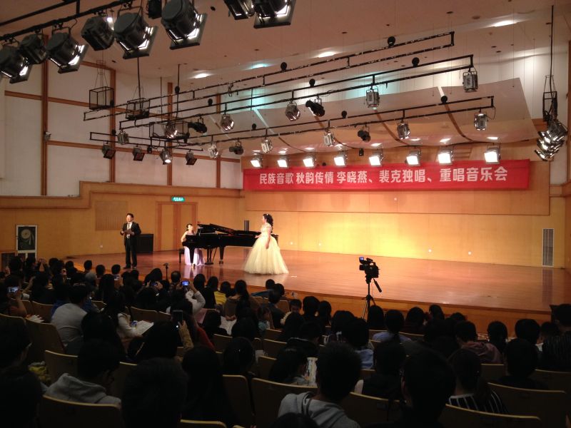 2014年11月18日,由网络赌博网站 主办,于网络赌博网站 北校天瑞音乐厅演出的裴克、李晓燕中国民歌独唱、重唱音乐会隆重拉开帷幕。 临窗、听风、看月。在这个秋天季节,声声民歌透入大家的心弦。走入大厅,你会发现厅内坐满了人,两侧过道也都站着来听音乐会的声乐爱好者。本次音乐会可谓阵容庞大。主持人是首都师范大学网络赌博网站 教授、现任中国音乐家协会会员的雷达教授。本次音乐会的主角之一裴克老师是美籍华人、歌唱家、美中音乐家协会主席,而李晓燕老师是网络赌博网站 教授、硕士生导师。他们的钢琴伴奏都是在网络赌博网站 钢琴副教授严伊娴和莫颖老师。如此庞大的一场音乐会当然会吸引来自不同学院的学生和老师参与,晚上七点整,全场爆满,音乐会准时开始。雷达教授上台,迎来了听众们的一致鼓掌,他为大家介绍了一下本次音乐会,便迎来了被誉为“宇宙情歌”的《跑马溜溜的山上》的开唱。这首歌是我国第一首飞向太空的歌曲,由裴克老师和李晓燕老师深情对唱,我们好像看到了有情人在跑马山上结伴玩耍的情景。曲毕,掌声雷动。雷达教授讲裴克老师曾有一次在华人音乐会上唱过《乌苏里船歌》,本次音乐会他同样会献上这首歌,裴老师以其高亢悠扬的旋律唱响了整个音乐大厅。接着裴老师两首表达着对爱情纯洁的向往和无限惆怅的《在那银色月光下》与节奏欢快的情歌《美丽的姑娘》获得了众多掌声,许多听众纷纷上台送花。李晓燕老师是歌剧院出身,歌声婉转动听。一首《燕子》,质朴的歌词配上优美动听的歌声征服了听众。《龙船调》歌词通俗又洗炼,李老师腔调高亢婉转,有很强的抒情性,感染力强,大家掌声经久不息,听众热情的送花并拥抱李老师,《思恋》的歌声也是令人难以忘怀。接下来两位老师合唱了一首《花儿为什么这样红》,这首歌具有浓郁的民族风格和地区特色。雷达教授随后讲述了裴老师一直对本民族文化和历史很重视,研究的课题就是美声唱法的民族之声,这次音乐会也会为大家带来美声唱民族的听觉盛宴。《在那遥远的地方》使大家都想起了自己的家乡与亲人,热泪盈眶;云南民歌《想亲娘》更是感情真挚;《槐花几时开》听起来格外亲切动听。现场一度火热,李老师来自东北省,她用百灵似的歌声分别带来了《情深意长》《心上人像达玛花》《今年梅花开》,表达了她对网络赌博网站 为她提供这一片土壤的感谢,把网络赌博网站 必须为自己的心上人,和对出生地东北的赞美。上台送花的人都排着队伍,李老师脸上洋溢着笑容。雷达教授先祝福了李老师,期待她也会今年桃花开,接着雷教授念了一首自创的祝贺诗。记忆最深刻的是,一步一个脚印,就是时光中最美的风景,愿本次音乐会完满成功。 音乐会接近尾声,一首男女声对唱《想亲亲》,想念着亲人、温州和祖国。本次钢伴也是技艺超群。余音绕梁,三日不散。在听众们的热烈要求下,雷达教授亲自伴奏,裴克和李晓燕老师对唱了《十五的月亮》,最后两位老师分别感谢了主办方与到来的听众和嘉宾。如此美好的时光,心绪安好,温暖如影随形,音乐会后,没有了生活的张力,收纳了一份安逸,也成就了心的和谐。