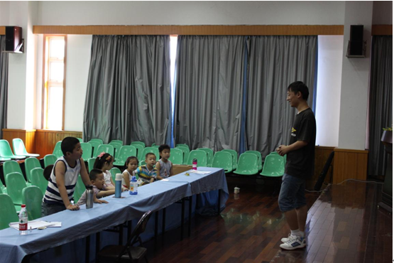 2014年7月5号的课程是音乐欣赏课与器乐课。《音乐欣赏》由冯逸飞同学引导小朋友们欣赏了《千与千寻》,动画版《西游记》以及《喜羊羊与灰太狼》等动画主题曲。伴随着游戏小朋友们热情高涨,踊跃发言,他们为了争夺小红旗个个表现得非常棒。《器乐课》分为两个小班授课:钢琴课上潘洁洁同学认真地教小朋友们简单的乐理知识,教她们打节奏,及简单的旋律,让小朋友们自己感受;朱玉铭同学教小朋友一些奥尔夫乐器。孩子们用不同的节奏一起演奏儿歌《剪羊毛》。