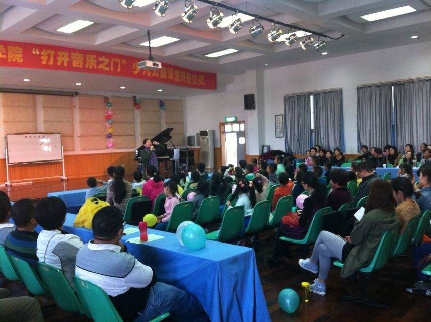 面向全校教职工子女(6-13岁)开放“打开音乐之门”少儿公益课堂。