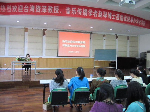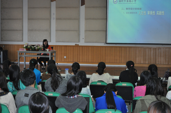 举办了“2013年中小学音乐名师论坛”讲座之三——《漫谈小学音乐课堂教学设计》,主讲人为浙江省教坛新秀,中学高级教师朱旭娟老师。