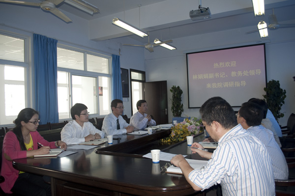 林副书记认真听取了学院领导班子汇报后,对学院一年来的工作给予了充分肯定。并就实践教学体系与平台建设、通识课程、教学业绩考核、青年教师培养等方面提出了指导性意见。林副书记要求学院班子要齐心协力,凝聚全院教师的力量,积极推进学院教学工作快速发展。
