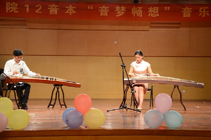 冲夜奔》、古筝重奏《渔舟唱晚》、扬琴、古筝、钢琴合作的《天空之城》等节目精彩纷呈,姜楠等同学表演的小提琴、钢琴等