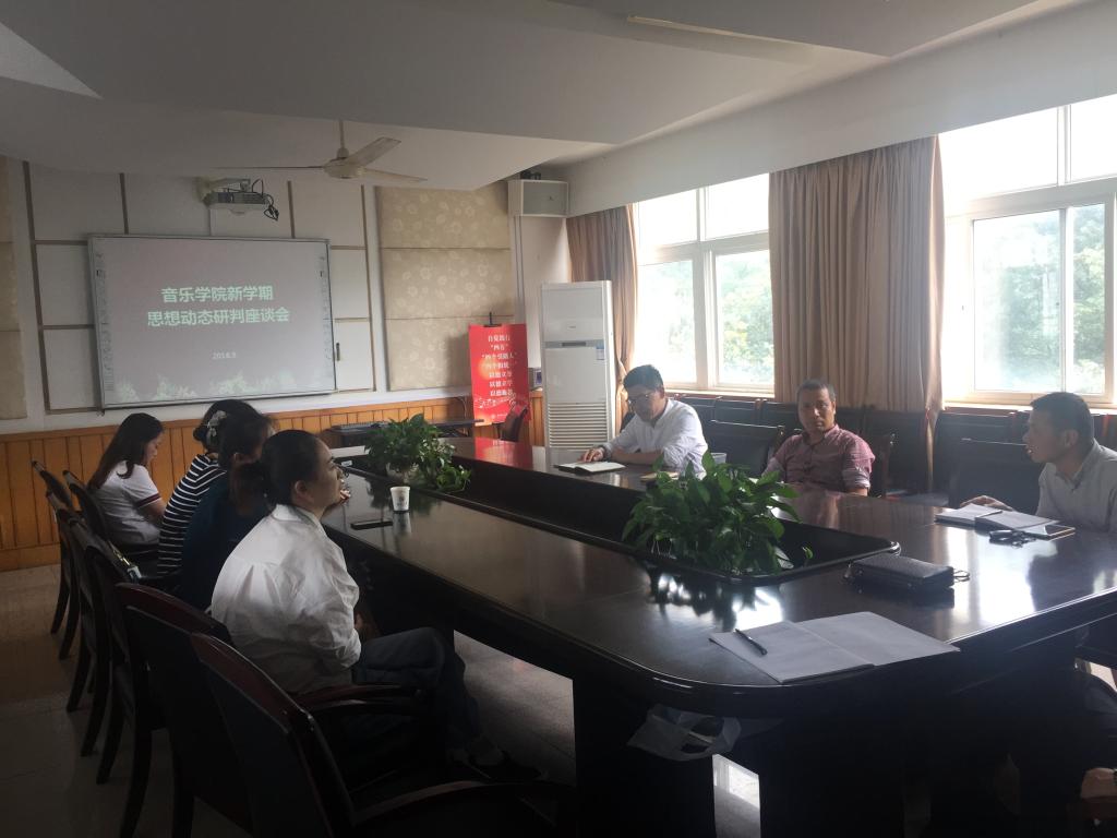 为了及时掌握学院教职工的思想动态,9月12日在音乐楼207会议室学院举行网络赌博网站 新学期教职工思想动态调研座谈会,学院领导、工会主席、各科室主任、青年教师党员代表等参加此次会议。