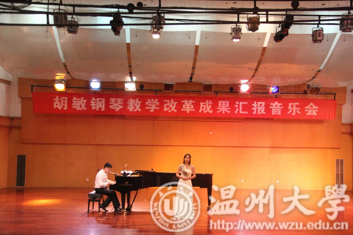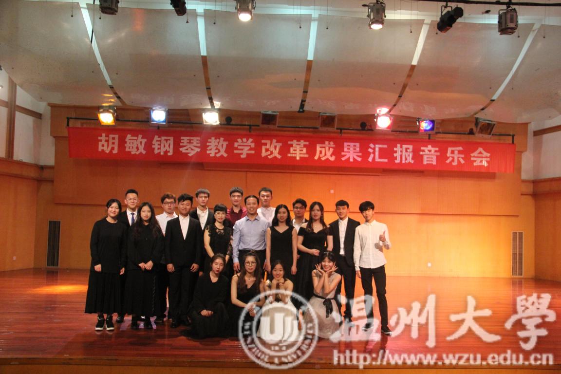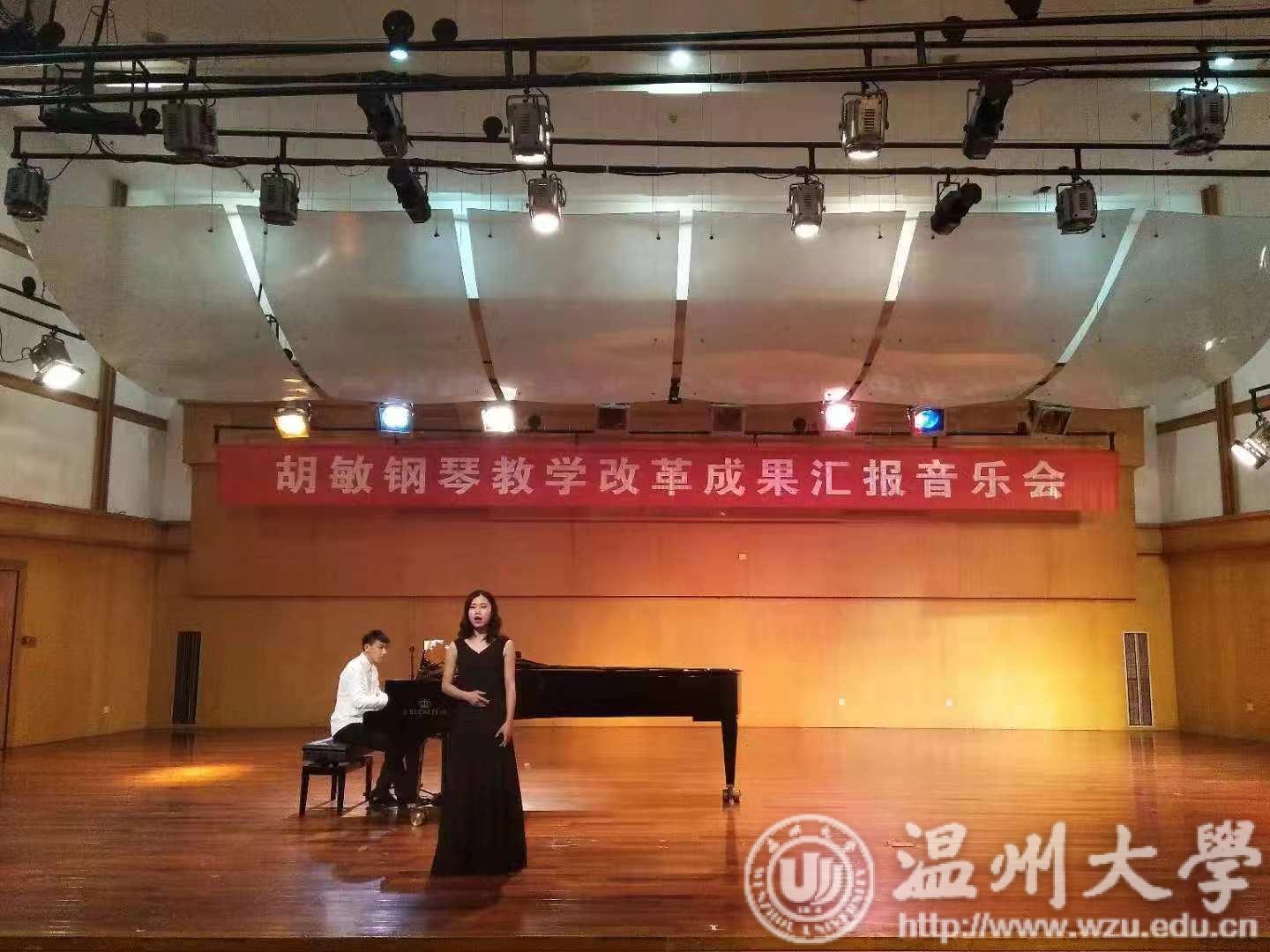 2018年10月24日晚上19:00,胡敏钢琴教学改革成果汇报音乐会在天瑞音乐厅如期举行,胡敏老师在自己主持的钢琴教学改革课题《探索与实践:基于大中小学一体化的教师教育专业钢琴教学》中,试图让音教专业的每个学生从大学一年级开始,在钢琴学习的内容上与中、小学音乐教材内容衔接,使学生毕业后能更好地胜任自己的工作。