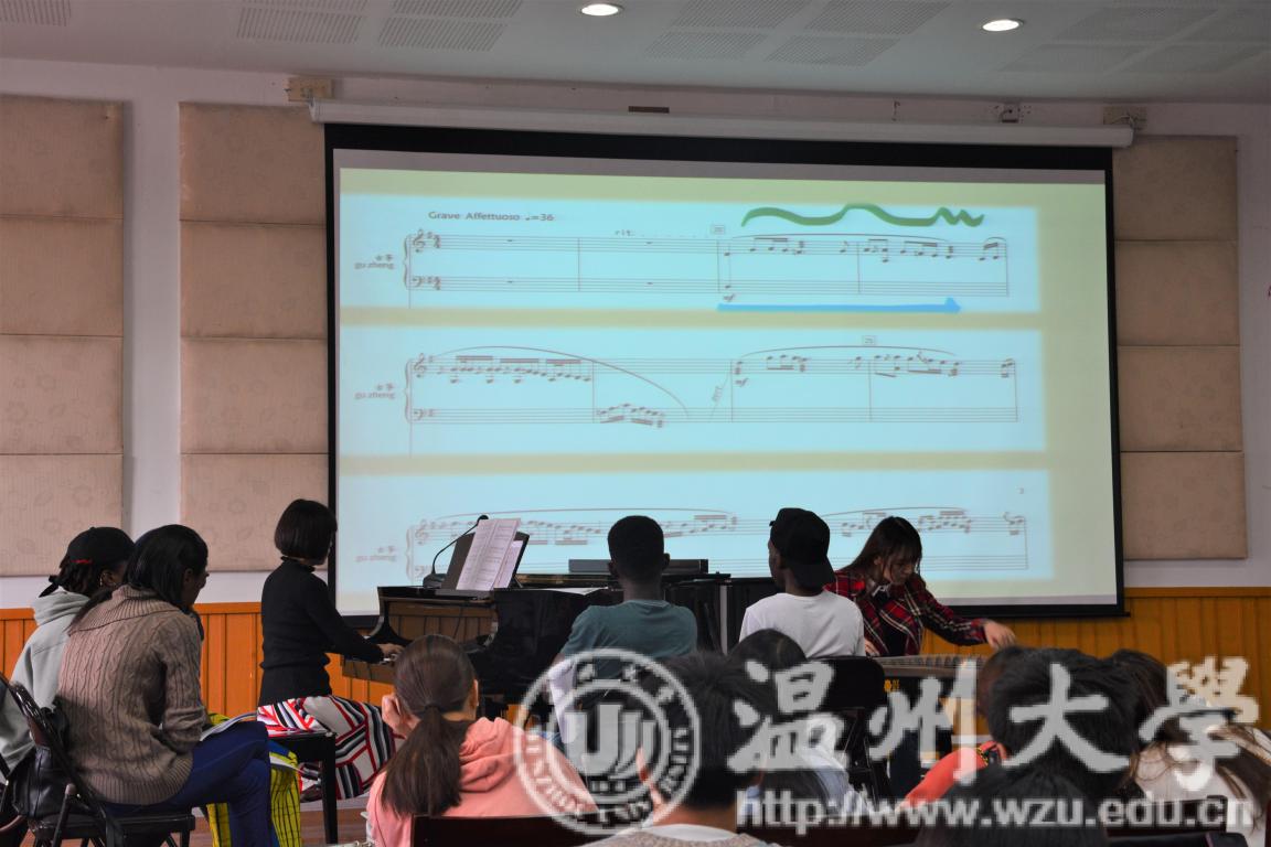 首先,阮辛怡老师依次介绍了本次观摩课的几位国际学生们。紧接着,几位国际学生进行了表演,虽然并不是音乐专业的学生,但他们的歌声中流露着对音乐的热爱。表演完毕后,阮辛怡老师正式开始了本次公开课堂。