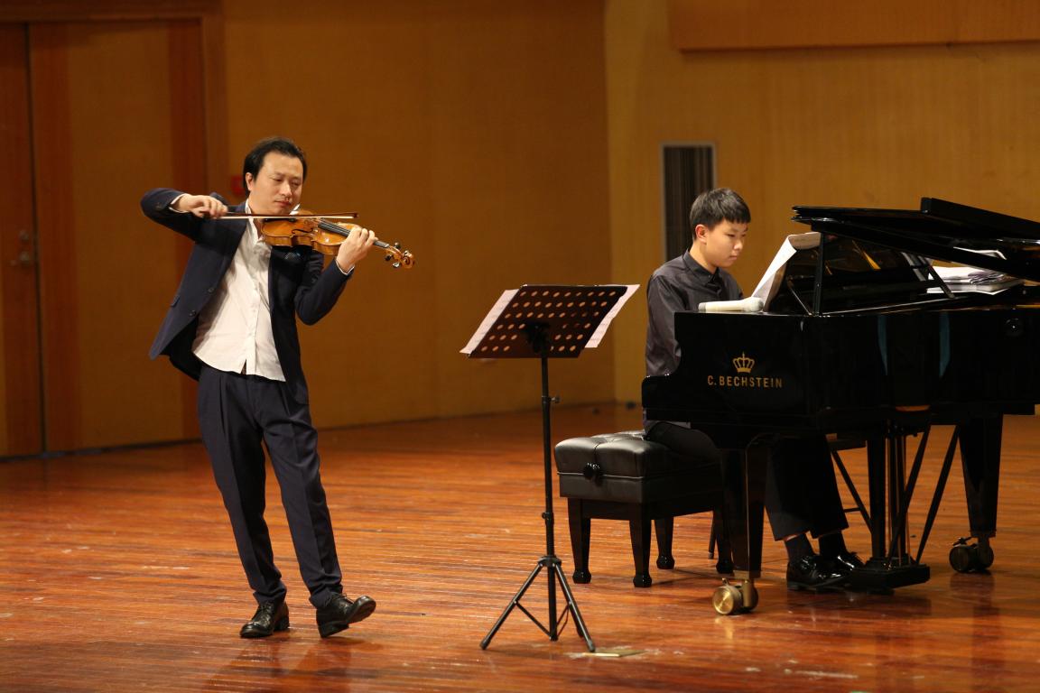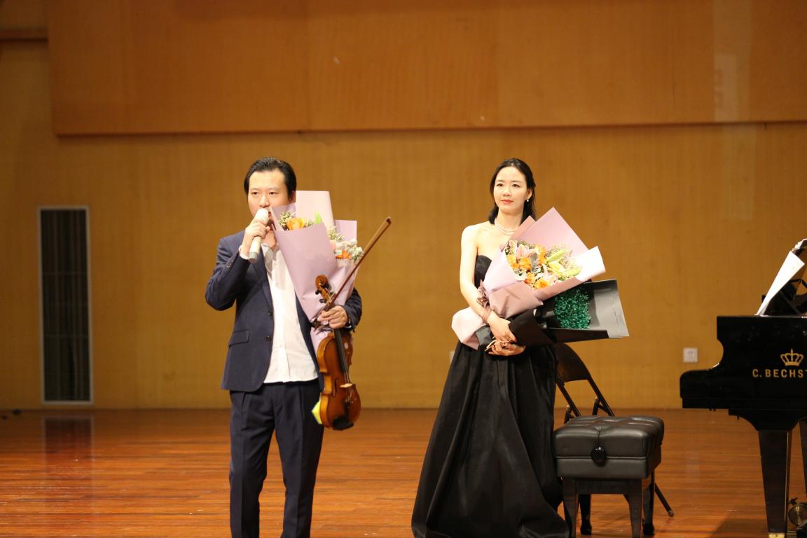 本场讲演音乐会在胡锦超老师演奏的巴赫“无伴奏小提琴奏鸣曲”开始,其绝妙的琴声刹那间吸引了来自校内外观众的视听,陶醉在美妙优雅的琴声之中……同时,两位老师结合经典电影片段,让观众品味了影视大餐。音乐会期间还有校内外学生的穿插助演,迎来了观众的好评与阵阵掌声。
