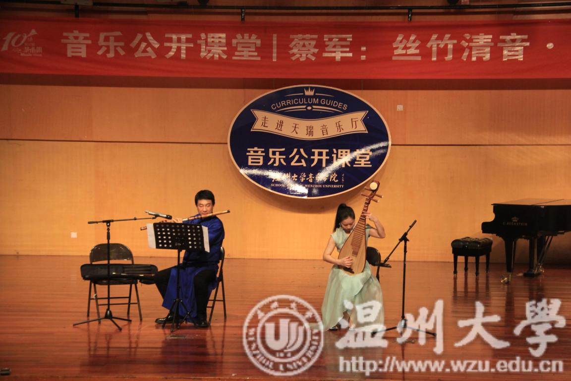 天瑞音乐厅举行了“丝竹轻音·谈古论今”的音乐公开课堂。主讲人为蔡军副教授,表演嘉宾为赵雷教授、林瑶副教授以及高丽君老师。