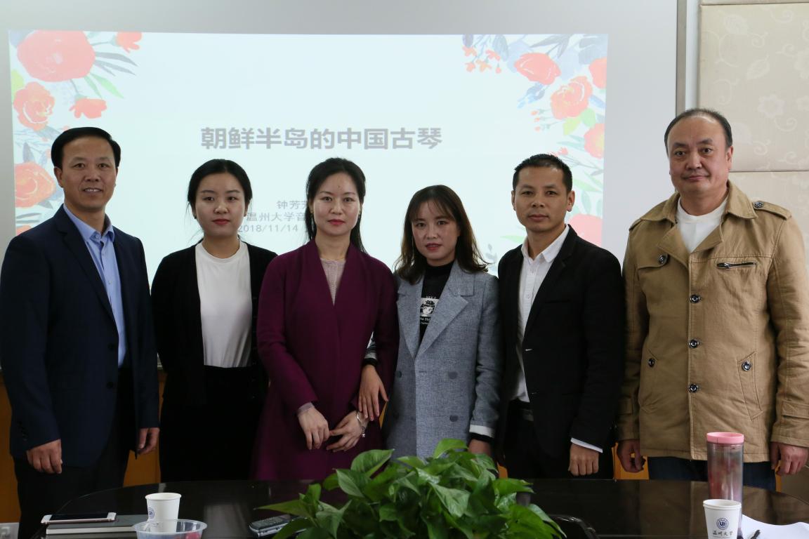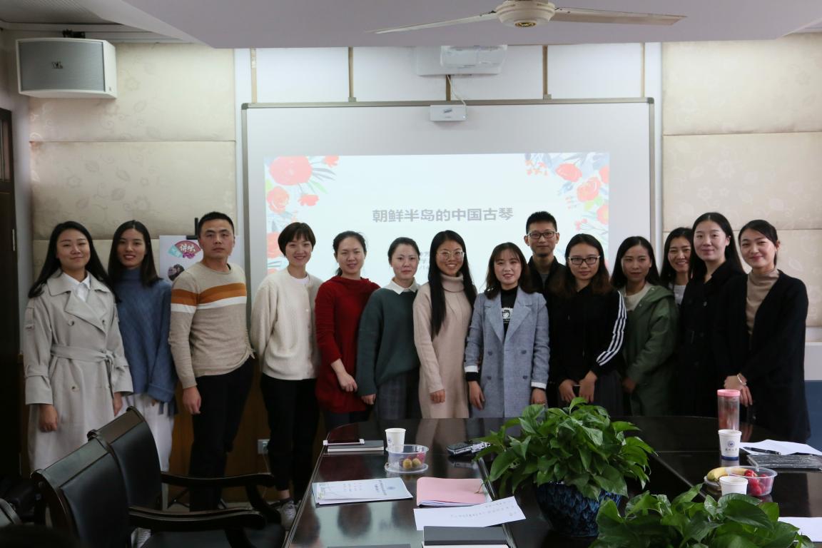 钟芳芳博士主讲的题目是《朝鲜半岛的中国古琴》,钟老师首先从起源、形制两方面介绍了朝鲜半岛的玄琴。作为韩国的传统乐器,有史料记载玄琴由4世纪中国晋朝送给高句丽的七弦琴改造而来,但学界对此有较大争议,既有由“卧箜篌”而来的观点,也有由“七弦琴”与“卧箜篌”相结合之说。钟老师综合比较文献、图像相关资料,认为玄琴与七弦琴的音位数、演奏法不同,整体更接近于卧箜篌。接着,钟老师引用大量文献史料,对古琴东传朝鲜半岛的历史进程进行了考证。其一,因宋朝向高丽朝赠送雅乐器、乐谱和佾舞,高丽朝承接了中国的雅乐,“雅乐用”古琴随之东传朝鲜半岛;其二,朝鲜王朝以儒教治国,文人追捧“程朱理学”,效仿中国文人习琴,在朝鲜半岛掀起了“古琴热”,促使了古琴在朝鲜半岛的“本土化”,并出现了许多编撰的古琴谱与古琴书籍。最后,钟老师还就古琴东传朝鲜提出了如20世纪以后古琴缘何在朝鲜半岛失传等问题,与在场师生进行了交流。