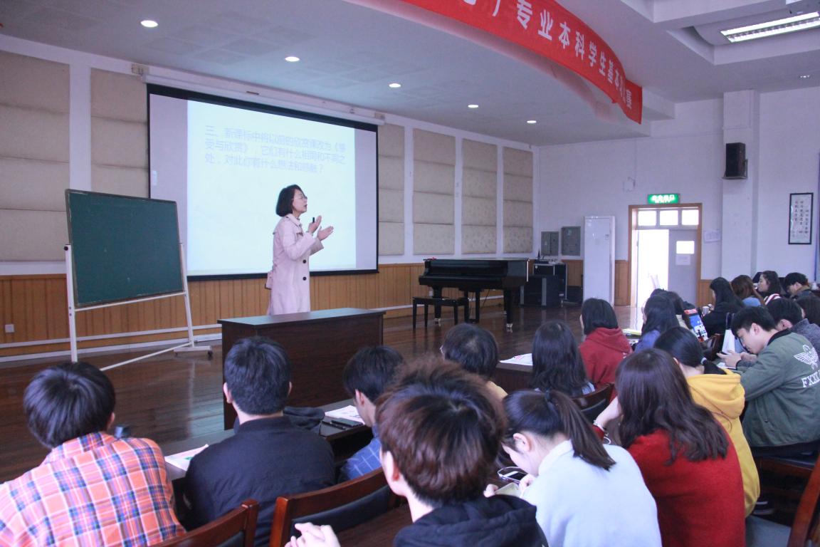 首先是蔡军老师带来的“乐理与视唱练耳实践课程”。乐理、视唱与听音可以说始终伴随着我们的音乐之路,几乎每个学习音乐的学者每天都会用到。乐理是音乐学习的基石,没有乐理知识的支撑可以说一切都是空谈,其重要性不言而喻。视唱和听音也是对一个乐者基本素养的考验,这三者在运用时相辅相成,缺一不可。本节课堂将这三者结合运用在实践之中,帮助同学们巩固了基础知识,让同学们在追求音乐作品时,不忘记最基本的功底。接下来是严伊娴老师的“即兴钢伴与演唱”。如果说上一节课是理论与实践的综合,那么这一场可以说是真正的实践课堂。即兴伴奏在未来的音乐实践中占据了很大一部分比重,可以说是运用的最多的一项技能。对于未来将要从事声乐教育的同学们,即兴伴奏无疑更是重中之重。这节课堂,严伊娴老师以音乐课本为例为同学们分析了几种即兴伴奏的形式。最后是吴春艳老师的“音乐教学论与教材教法实践课程”。本届课堂为我们介绍了课本教材的一些基础内容、教学方法以及为人师表的一些基本职业操守。也许我们已经具备了教学的基本理论知识,但是教学实践与知识完全不同。通过几位同学“模拟课堂”的环节,吴春燕老师为我们讲解了如何教学、通过什么样的方式去教学等。