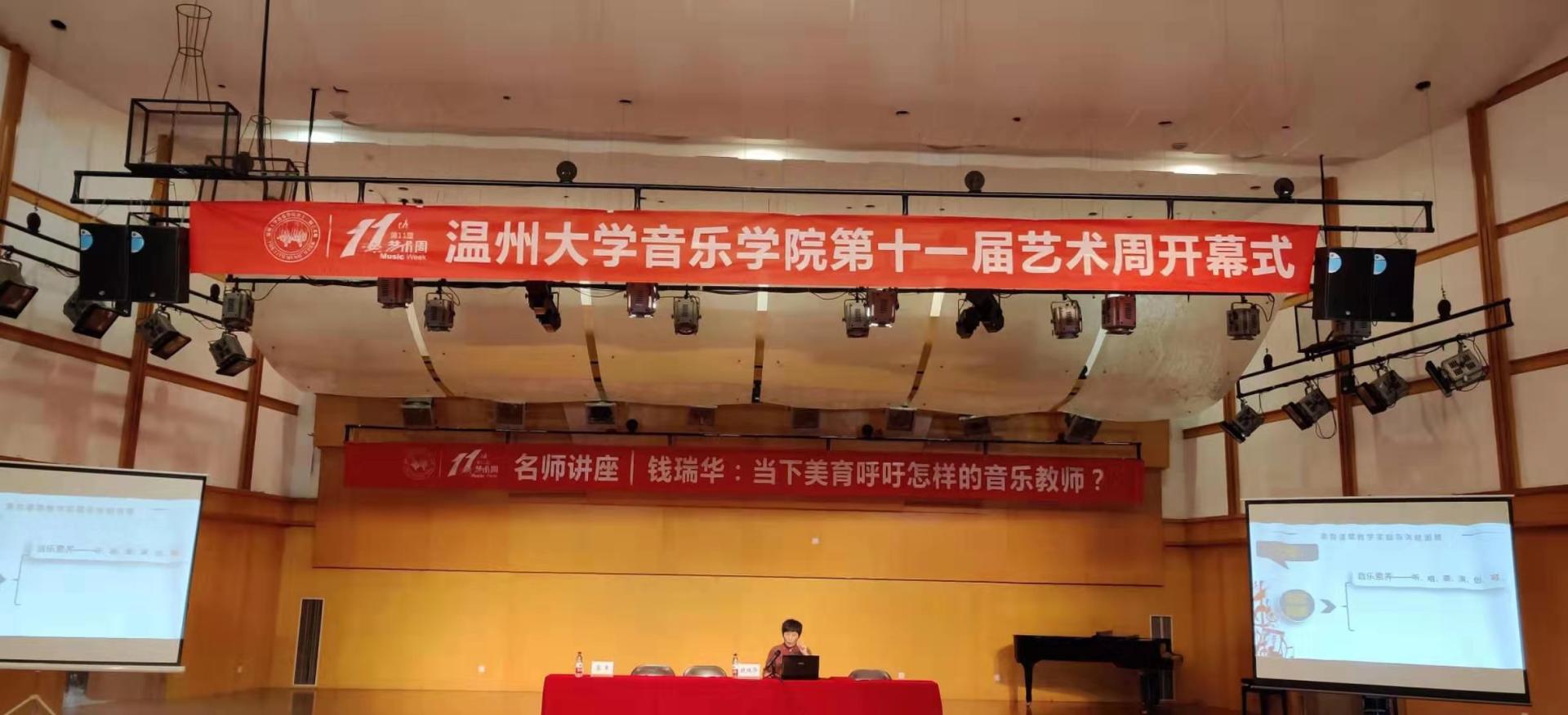 艺术周以钱瑞华讲师为大家开堂讲座作为开场——"当下美育呼吁怎样的音乐教师?" 钱瑞华老师是温州市教育教学研究院音乐教研员,浙江省特级教师、温州市名师,中央网络赌博网站