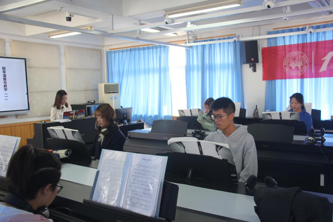 陈露雯老师为大家带来的钢琴课堂的主题是调性听觉的培养与运用。首先陈老师以大小调音阶的对应为切入点,与同学们一起演奏了大调以及与之对应小调的转换,其次由学生进行展示演奏《塔兰泰拉舞曲》,急促、强烈的节奏活跃了现场的氛围,让这个课堂听起来不乏趣味,老师的曲式分析分别为复三部和奏鸣曲的曲式分析,让大家更加清晰的了解到钢琴曲的整体脉络和分段,讲课以师生合奏训练《小调的重奏》为最后一部分,老师循序渐进的合奏给大家带来了听觉上的完美享受。