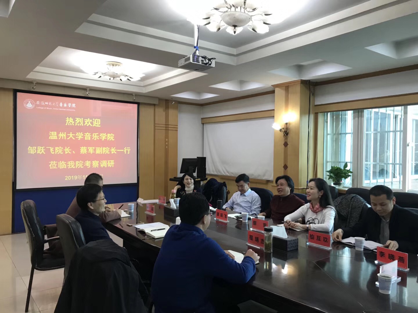 ,在院长徐元勇、书记姜小东等的带领下,参观了琴房、琴房数字化管理系统、教学区等场所及设施,徐院长就该学院基本情况,本科生与研究生不同的管理理念和模式、个性化人才培养方案、学科建设等方面进行了介绍。邹跃飞院长对该院的热情接待和诚恳交流表示感谢,并介绍了学院的基本情况和办学成果。双方就人才培养方案制定理念、本科生单项技能和综合技能培养、师范专业认证、人才培养模式等工作进行了深入交流。