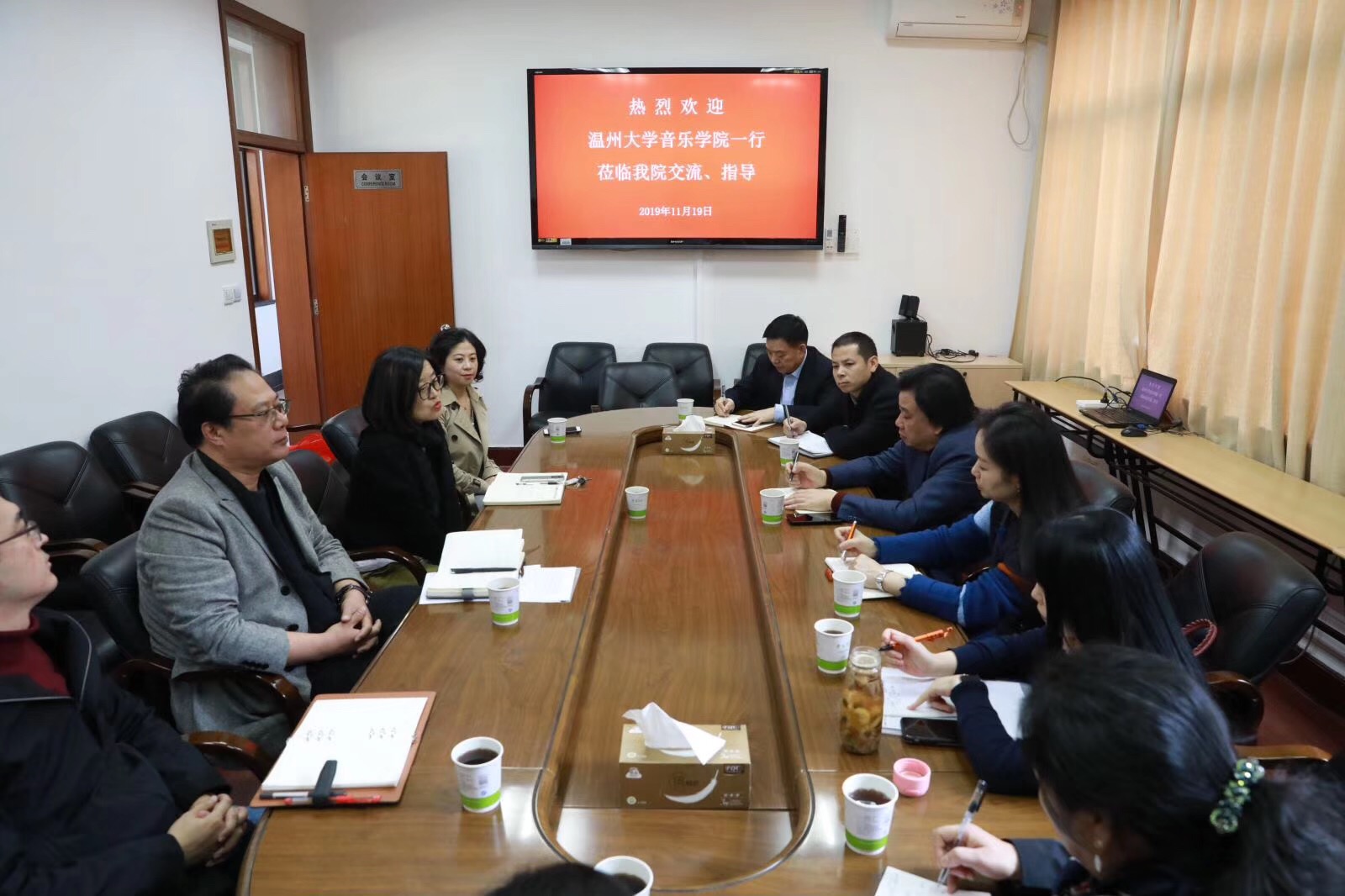 ,院长吴和坤、书记杨海燕等出席了座谈会,吴院长代表学院致欢迎辞,并对学院基本情况、人才培养模式、本科生交流项目、文化建设项目等进行了介绍。邹跃飞院长对该院的热情接待和诚恳交流表示感谢,并介绍了学院的基本情况和办学成果。双方围绕音乐学师范专业的师资、课程设置、人才培养方案、学科贡献度等工作进行对口交流。