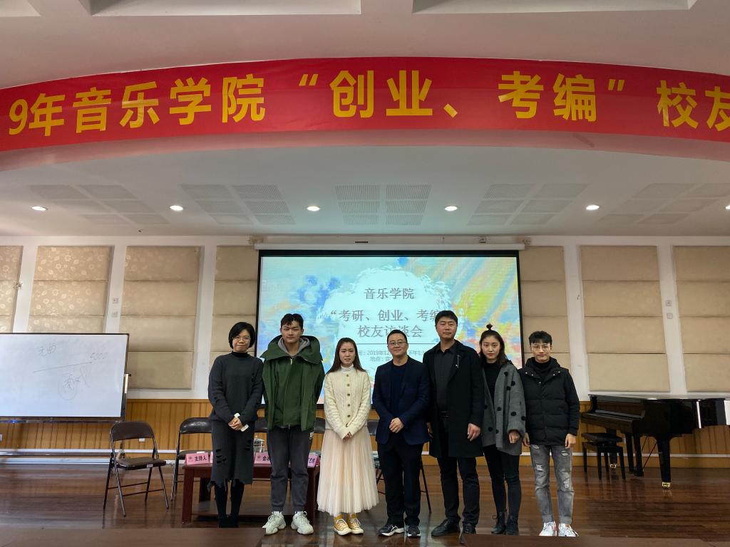 其次由刘敬芳学长为我们分享他的创业故事,学长也提出专业要扎实,创业所面临的问题会更多,所以付出的努力也更多。创业是不容易的,学长说到创业前要做好准备,专业知识要过硬,人生规划也要清晰,最好是边工作边创业,去积累工作经验,学会与学生家长打交道,才有资本去创业。接着由周超学长给我们分享了他的故事,周超学长也说到,在大学要有一个清晰的,同样教学也很重要,三分靠内容七分靠表演,让学生真真切切的体会到音乐魅力。