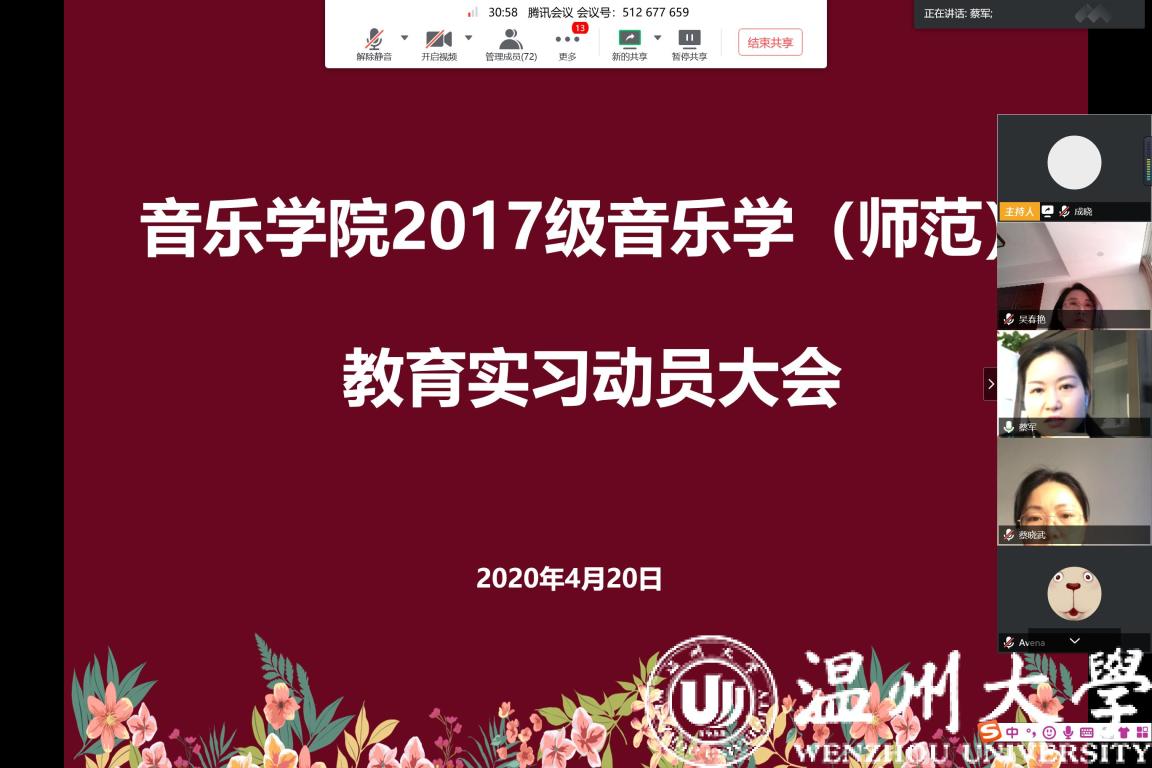 召开了2017级音乐学(师范)教育实习动员大会视频会议,17级音乐学(师范)本科全体学生参加了会议,网络赌博网站