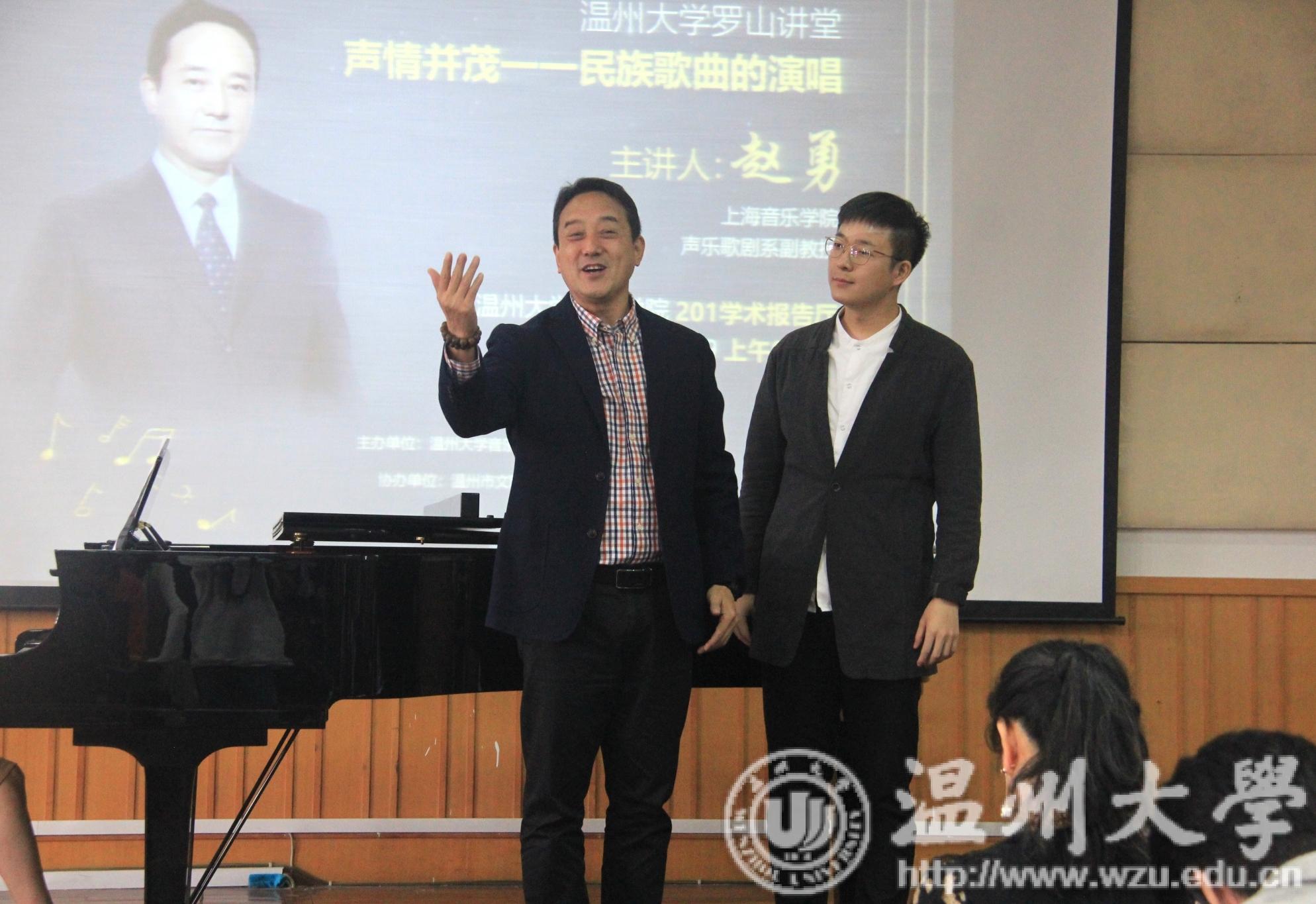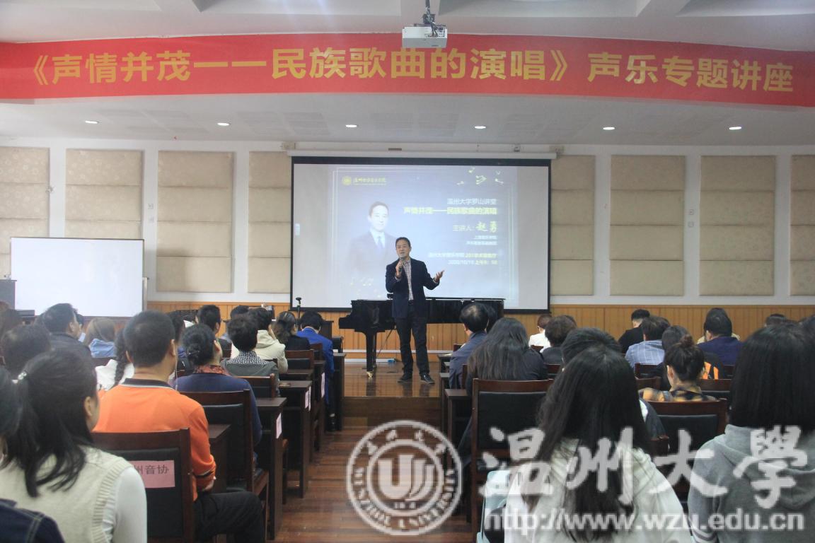 声乐歌剧系副教授、男高音歌唱家赵勇主讲的《声情并茂—民族歌曲的演唱》声乐专题讲座。此次讲座由网络赌博网站