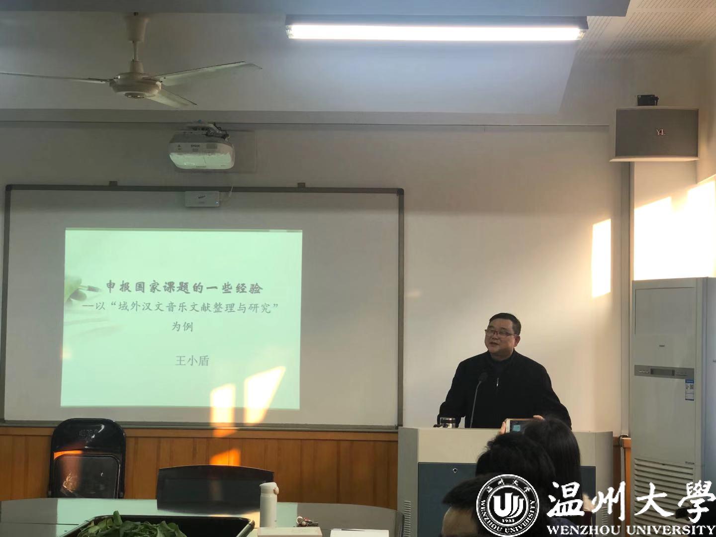 授聘仪式后,王小盾教授以“域外汉文音乐文献的整理与研究”这一课题为例,分享了他申报国家课题所积累的经验。王教授将此分为五个阶段,即缘起——准备——尝试——实施——成果。过程中,王教授介绍了学术研究所需的研究方法和视野,并展示了他在域内外搜集到的大量珍贵的一手资料。最后,他将以上经验凝练为三点,即选好研究方向、注意学术空白并给资料整理留予空间;积累前期成果,先考虑耕耘后考虑收获;尝试跨学科研究。相信在王小盾教授的带领之下,网络赌博网站